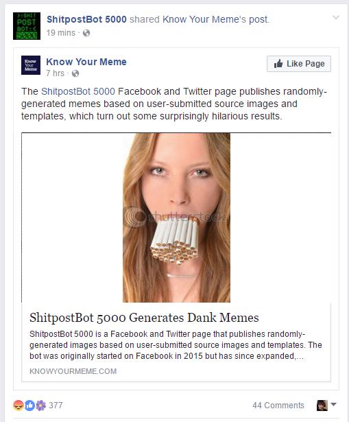 Uncategorized Shitpostbot 5000 Facebook Facebook is showing information to help you better understand the purpose of a page If the facebook link isnt available then the page or post is likely deleted